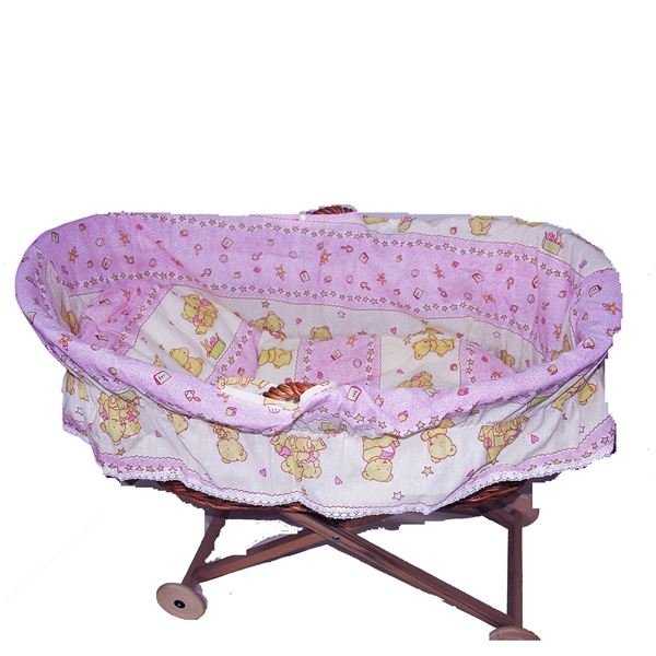 097001 Körbchen für ein Kind mit Nr. und Fahrwerk rosa Polsterung