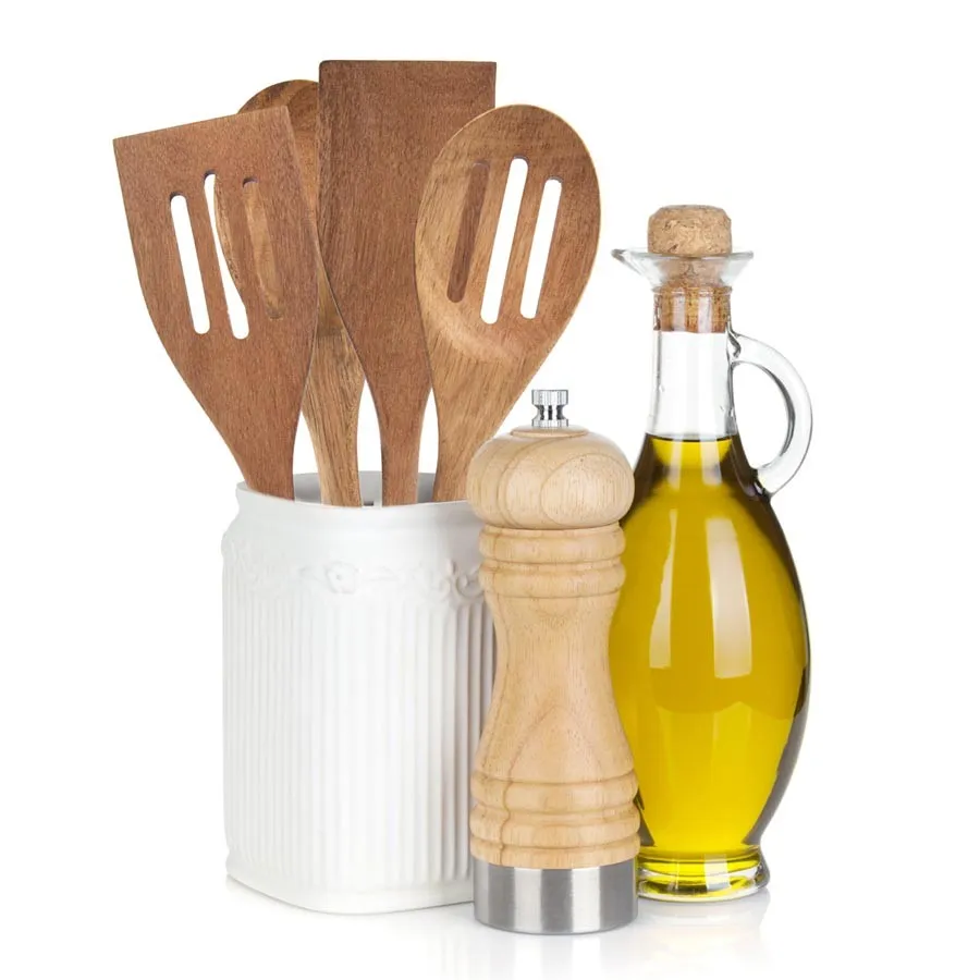WHITELINE Holzlöffel. Ovale Form, perforiert.Der Holzlöffel hat eine Breite von 7 cm und eine Höhe von 30 cm.Farbe: Kombination aus Natur und Weiß.Material: Akazienholz, farbiges Spray.