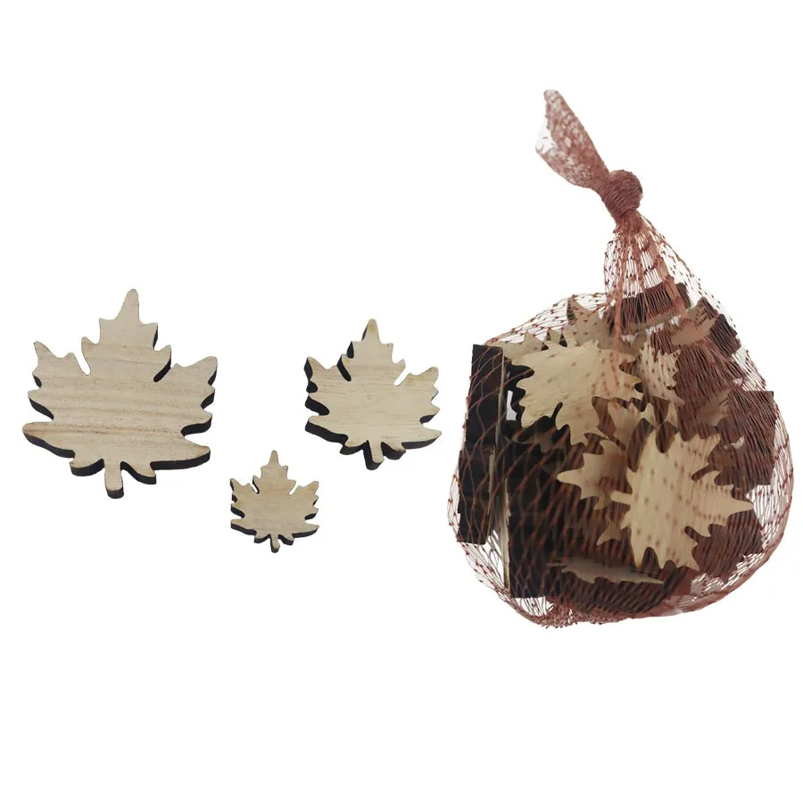 Set dekorativer Ahornblätter. Das Set enthält 24 Blätter. Maße: Farbe braun. Holzbasismaterial.