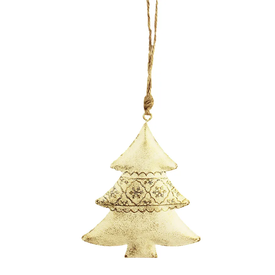 Hängender Baum. Maße: Breite 8,5 cm, Dicke 1,8 cm, Höhe 11,5 cm Farbe: Champagner Material: Metall