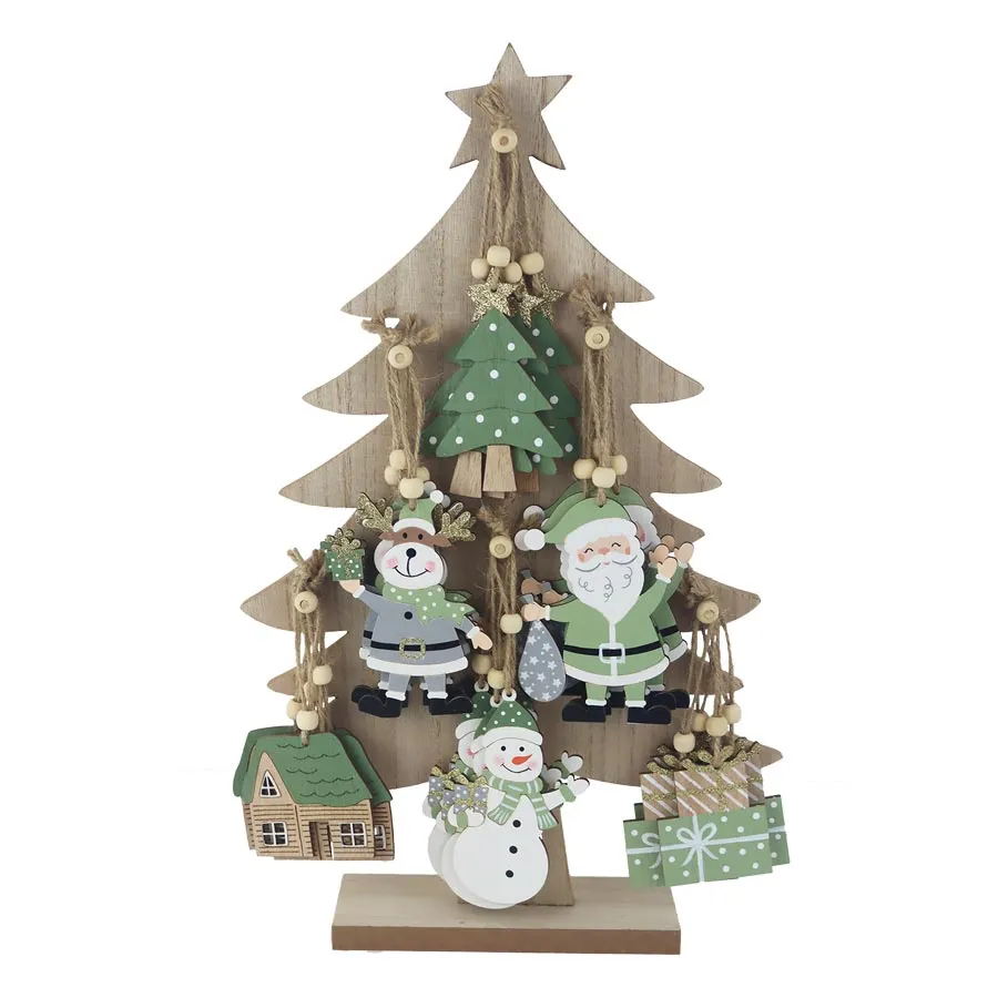 Dekobaum mit Weihnachtsschmuck zum Aufhängen. Der Baum enthält 24 Dekorationen zum Aufhängen. Die Dekorationen haben die Maße: 6 - 10 x 0,3 cm, Höhe 6 - 10,5 cm.