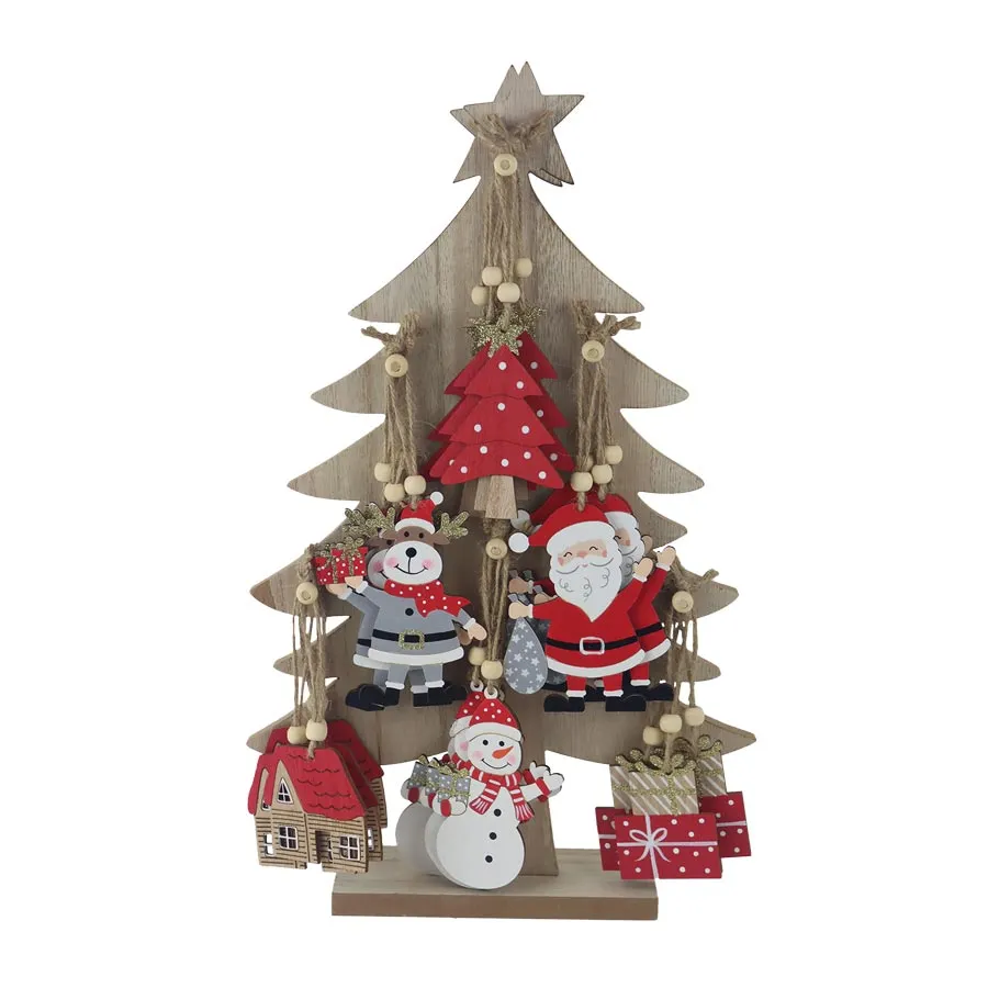 Dekobaum mit Weihnachtsschmuck zum Aufhängen. Der Baum enthält 24 Dekorationen zum Aufhängen. Die Dekorationen haben die Maße: 6 - 10 x 0,3 cm, Höhe 6 - 10,5 cm.