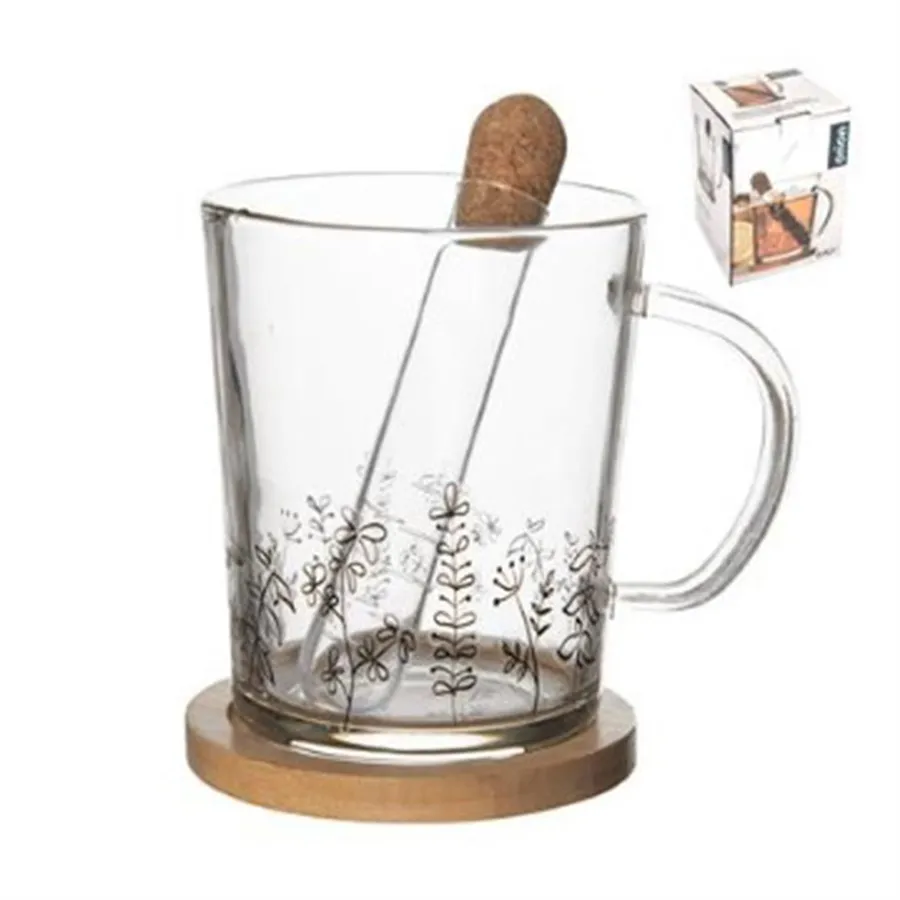 Becher Glas/Bambus Untertasse+Ei LOUKA 0.42 ll O0271