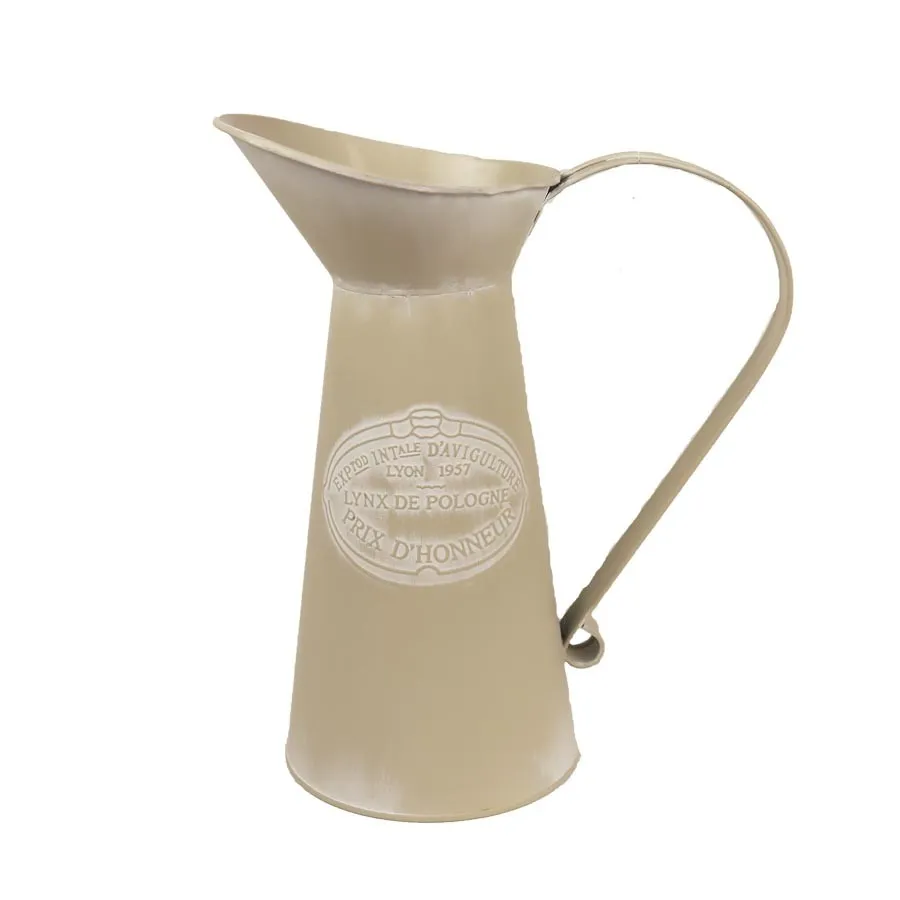 Zinnkessel. Die Teekanne dient nur zur Dekoration, wir empfehlen nicht, sie mit Wasser zu füllen. Abmessungen : 22 x 12 cm, Höhe 27 cm. Farbe : beige. Material : Metall.