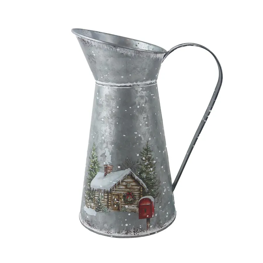 Teekanne aus Zinn mit Weihnachtsmotiv.