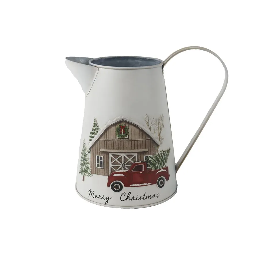 Teekanne aus Zinn mit Weihnachtsmotiv.