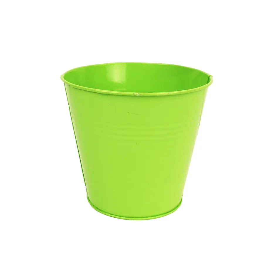 Blumentopf aus Blech grün. Blumentopfgrößen: - hat einen Durchmesser 13 cm am Rand. - hat Durchmesser 9 cm an der Basis. - Die Höhe beträgt 12 cm. Farbe: Grün. Material: Blech. Alle Produkten sind handgefertigtes gemacht und daher nicht 100%tig wasserdicht. Benützen Sie bitte deshalb einen Untersetzer oder wasserdichten Innentopf bevor Sie diesen Artikel auf einen wertvollen Untergrund stellen.