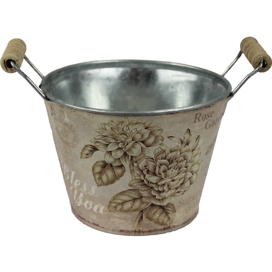Metall Blumentopf. Maße: Durchmesser 14 cm, Höhe 10 cm, Gesamthöhe mit Griffen 13,5 cm. Material: Metall. Alle Produkten sind handgefertigtes gemacht und daher nicht 100%tig wasserdicht. Benützen Sie bitte deshalb einen Untersetzer oder wasserdichten Innentopf bevor Sie diesen Artikel auf einen wertvollen Untergrund stellen.