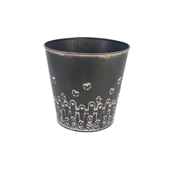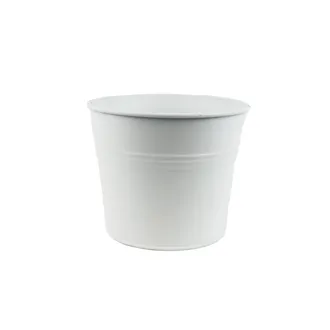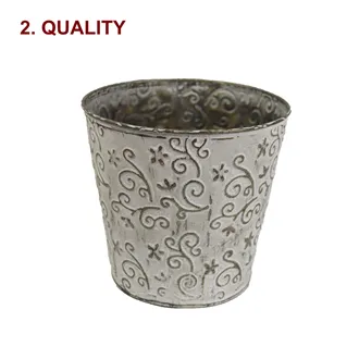 Blumentopf Jardin. Maße: Durchmesser 14 cm, Höhe 11 cm. Farbe: Weiß. Material: Metall. Alle Produkten sind handgefertigtes gemacht und daher nicht 100%tig wasserdicht. Benützen Sie bitte deshalb einen Untersetzer oder wasserdichten Innentopf bevor Sie diesen Artikel auf einen wertvollen Untergrund stellen.
