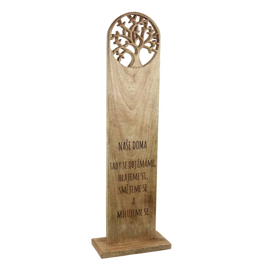 Begrüßen Sie Ihre Besucher mit einzigartigem Stil dank unserer Holztafel aus Mangoholz "Unser Zuhause". Die Tafel ist ein schönes Designstück, das Ihrem Zuhause eine persönliche Note verleiht. Hergestellt aus hochwertigem Mangoholz, zeichnet sie sich durch Beständigkeit und Langlebigkeit aus. Jedes Stück ist aufgrund der natürlichen Variationen in Struktur und Farbe des Holzes ein Unikat. Nicht spülmaschinenfest, nicht einweichen, nur mit einem feuchten Tuch abwischen. Ab und zu mit Speiseöl einreiben. Es ist möglich, dass das Mangoholz nach diesem Vorgang nachdunkelt.