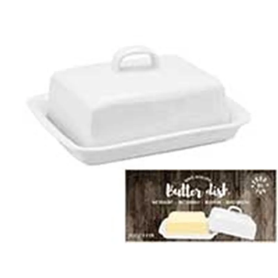Butterdose aus Porzellan und Bambus rund WHITELINE 16,5x12,5 cm