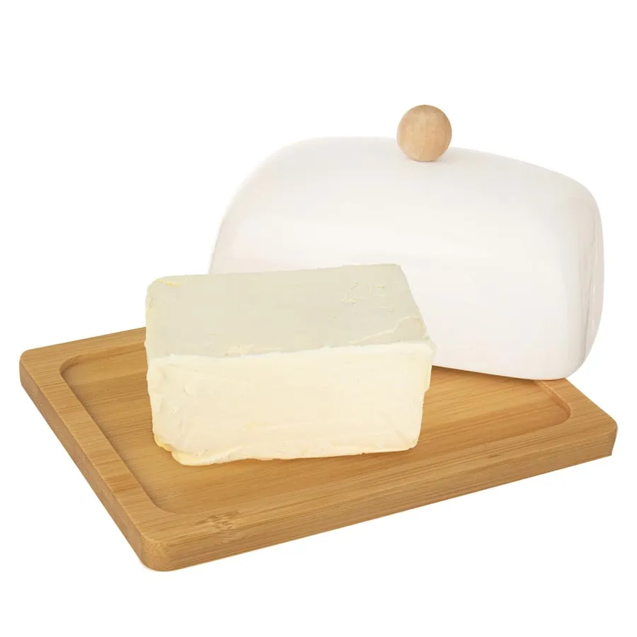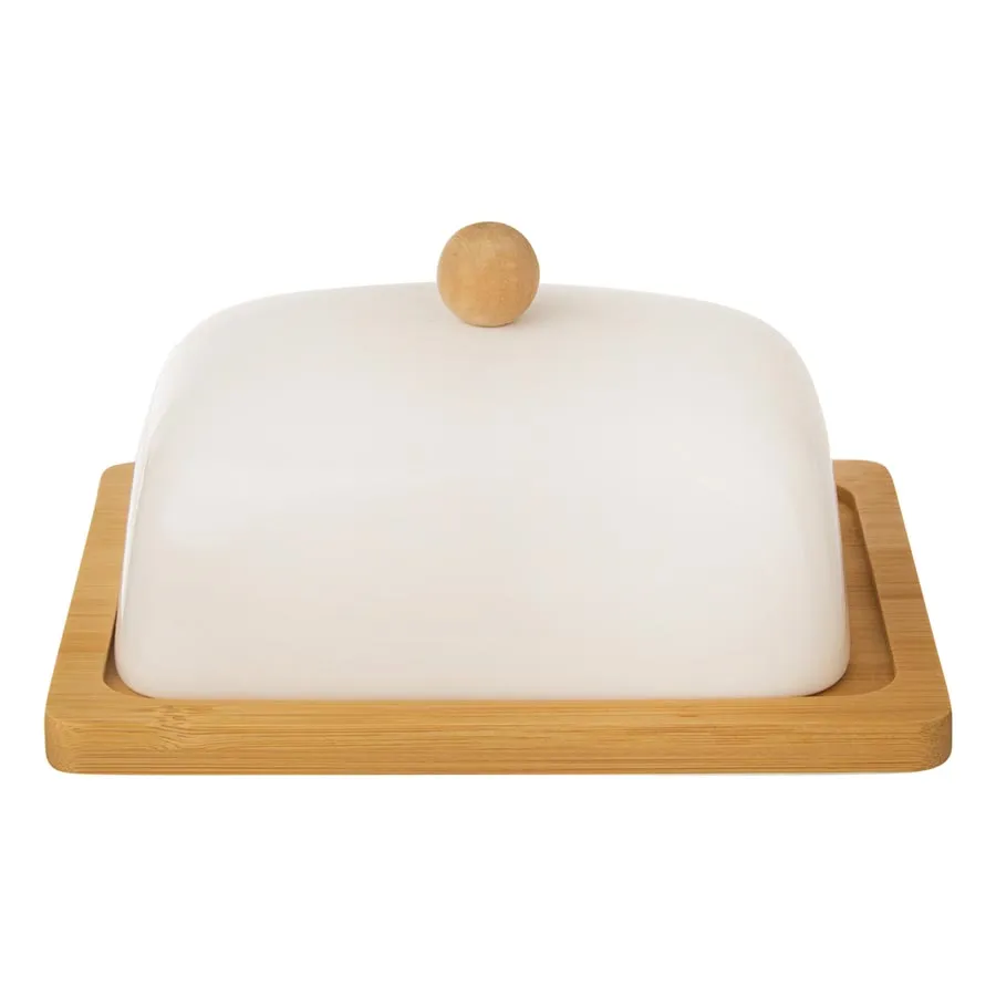 Butterdose aus Porzellan und Bambus rund WHITELINE 16,5x12,5 cm