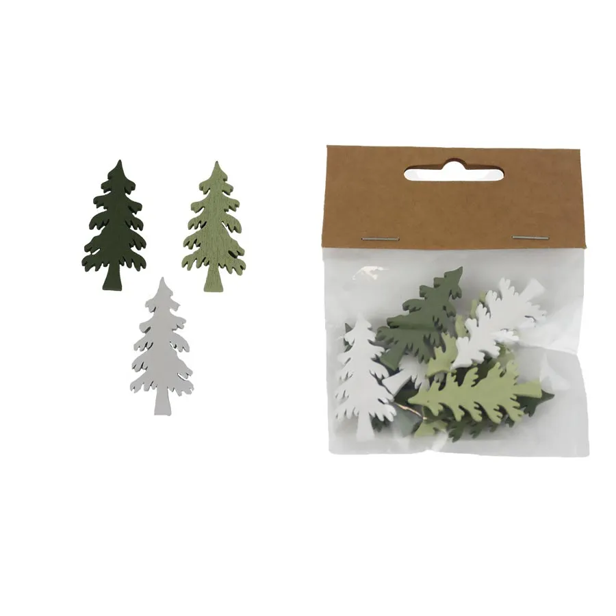 Set dekorativer Bäume. Das Set enthält 9 Bäume in drei Farben.