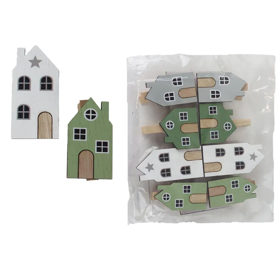Ein Satz dekorativer Hausklammern. Das Set enthält 8 Clips. Die Maße der Klappen betragen: 3 - 3,6 x 1,5 cm, Höhe 5 - 6 cm.