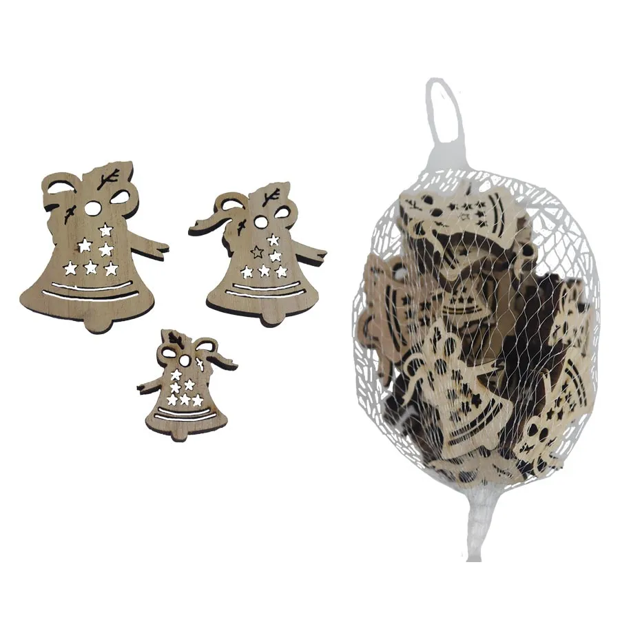 Set dekorativer Glocken. Das Set enthält 30 Glocken in drei Größen. Maße: Farbe: natürlich. Material auf Holzbasis.