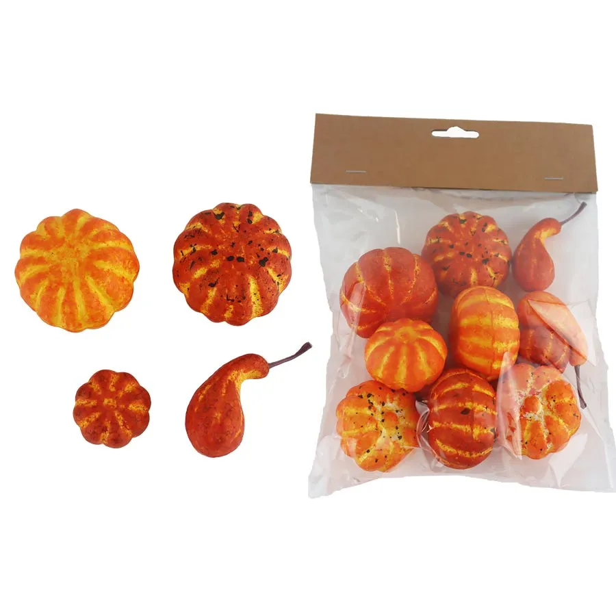 Set dekorative Kürbisse. Das Set enthält 11 Kürbisse. Maße: Durchmesser 2,5 x 5 cm, Höhe 3 - 7 cm.