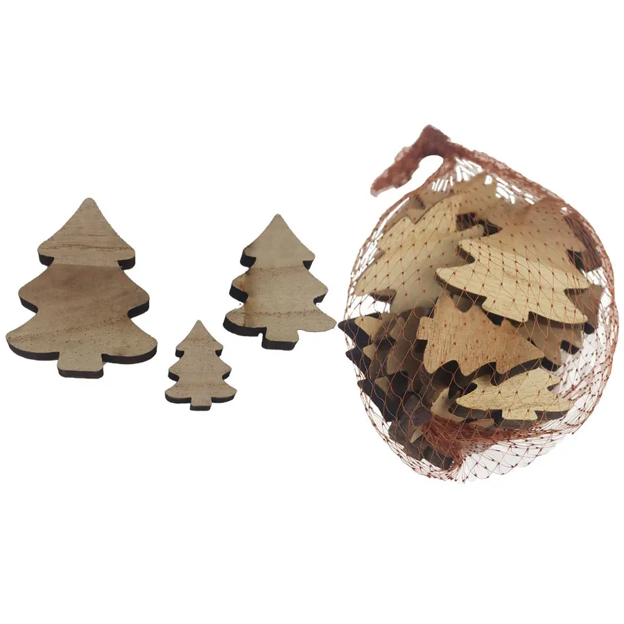 Set dekorativer Bäume. Das Set enthält 24 Bäume in drei Größen. Abmessungen: 2,5 - 5,5 x 0,7 cm, Höhe 2,5 - 7 cm.