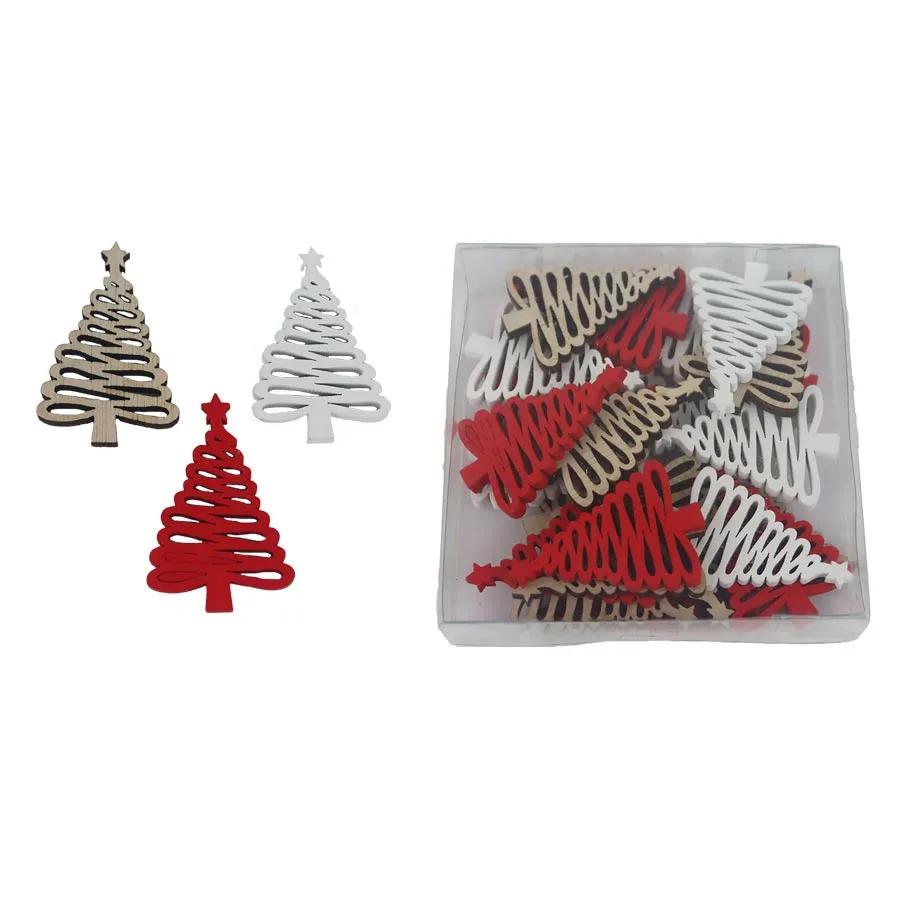 Set dekorativer Bäume. Das Set enthält 24 Bäume. Maße: Farbe: Kombination weiß, rot. Holzbasismaterial.