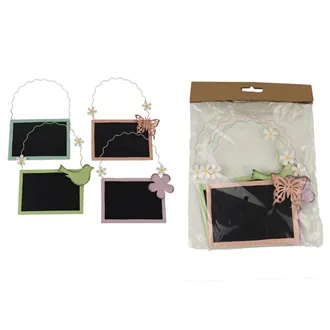 Dekoration zum Aufhängen. Abmessungen: 8 × 11,5 cm, Dicke 0,5 cm. Farbe: Kombination aus Natur mit Weiß, mit Schwarz. Material auf Holzbasis.