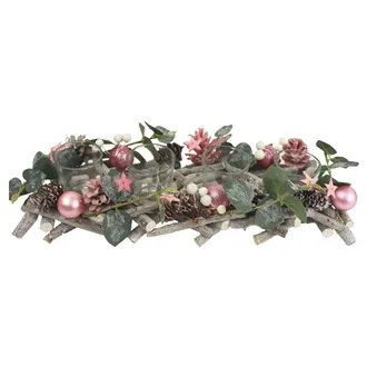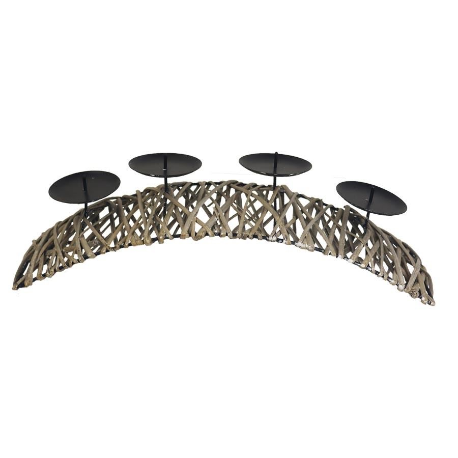 Weiden Kerzenhalter für 4 Kerzen. Maße: 40 x 15 cm, Höhe 17 cm. Graue Farbe. Material: Weiden, Blech.