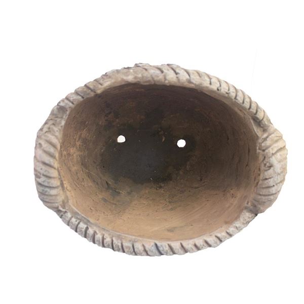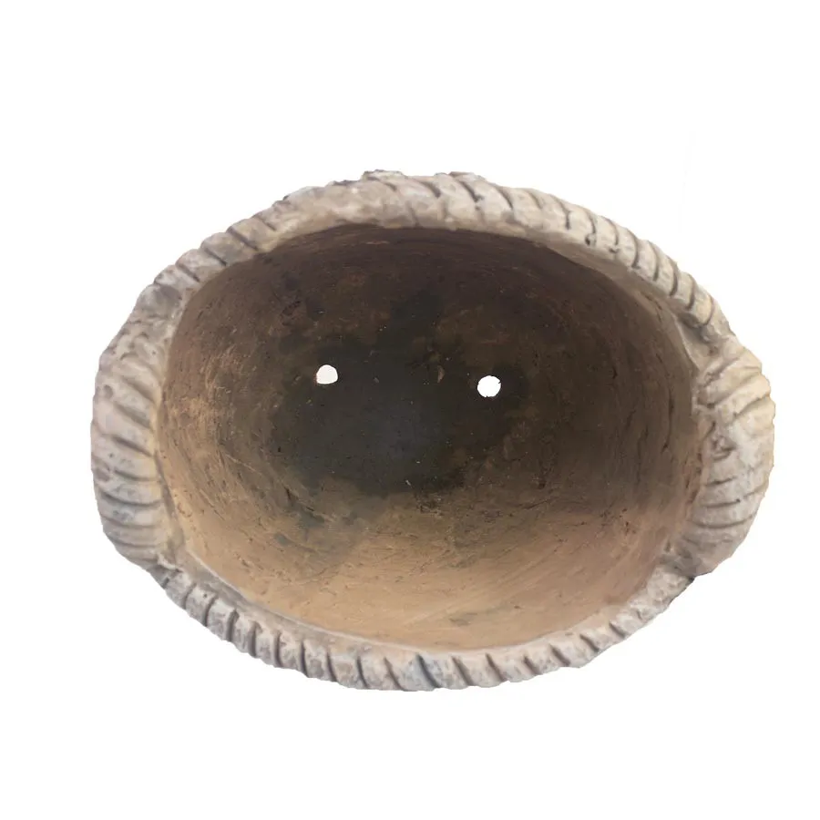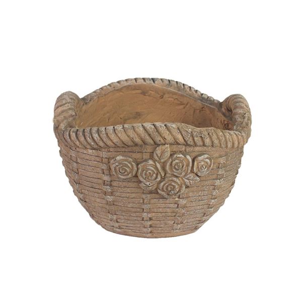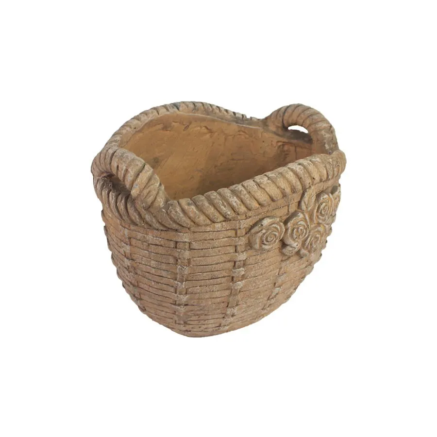 Dekorativer Blumentopf in Form eines Korbes.