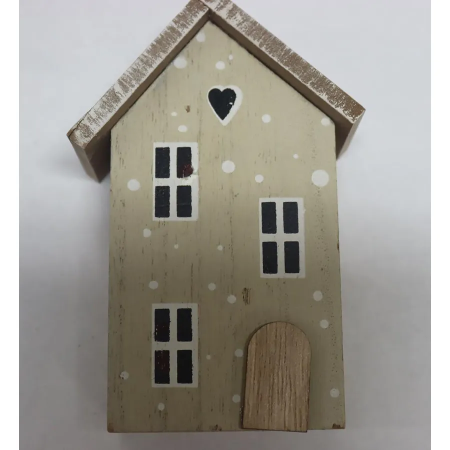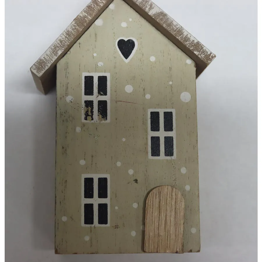 Das Haus ist 2. Baujahr, mit ungenauem Dach, einer abgenutzten, schief geklebten Tür.