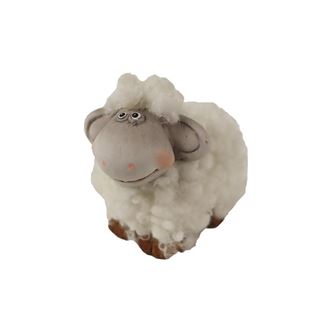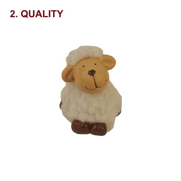 Die Dekoration ist in der 2. Qualität. Schlecht geklebte Wolle auf dem Oberkopf, an einigen Stellen ist die Mundform schlecht mit Farbe bemalt.