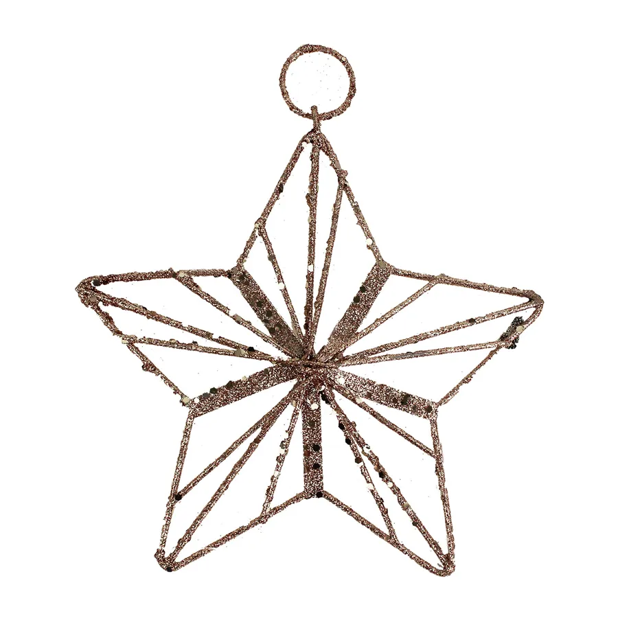 Dekorativer Stern. Maße: Durchmesser 15 cm, Dicke 1,5 cm Farbe: gold-rosa Material: Metall