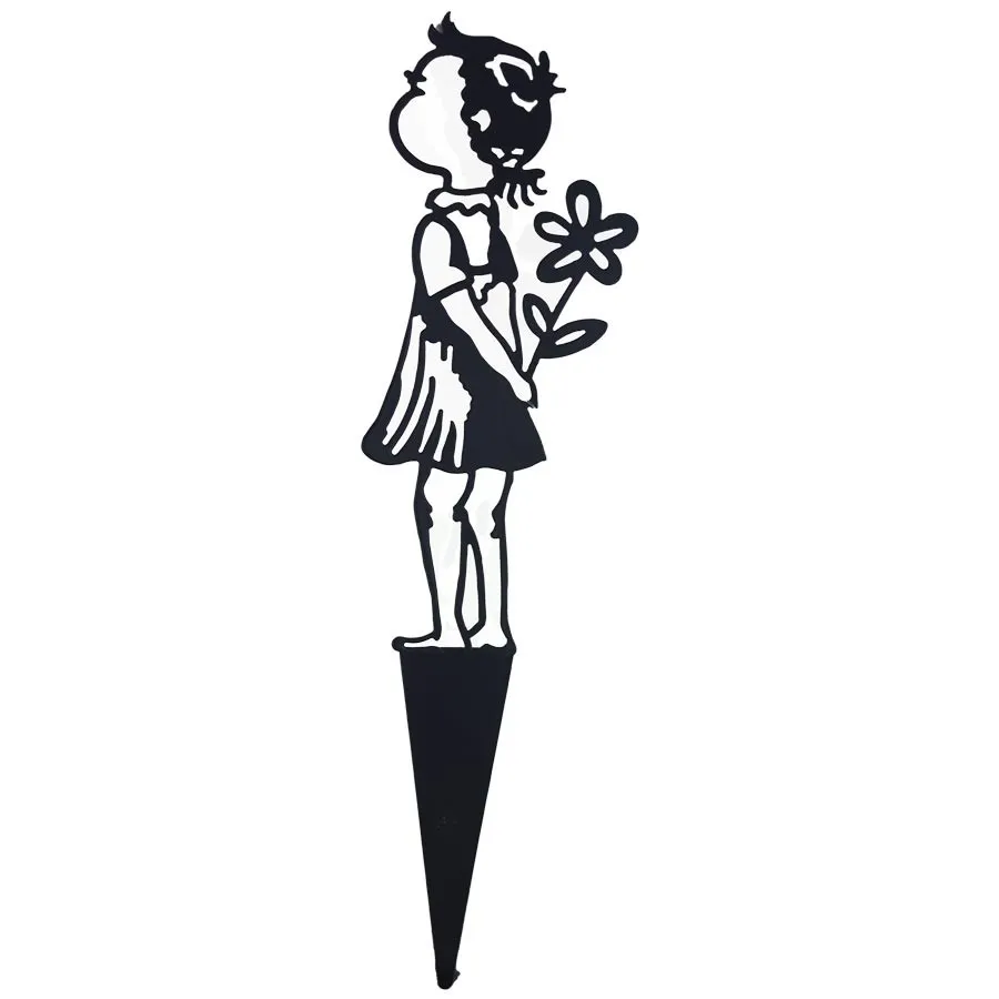 Dekorative Gravur eines kleinen Mädchens. Abmessungen: 5,5 × 0,1 cm, Kerbenlänge 25 cm. Schwarze Farbe. Material: Metall.