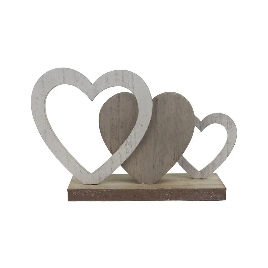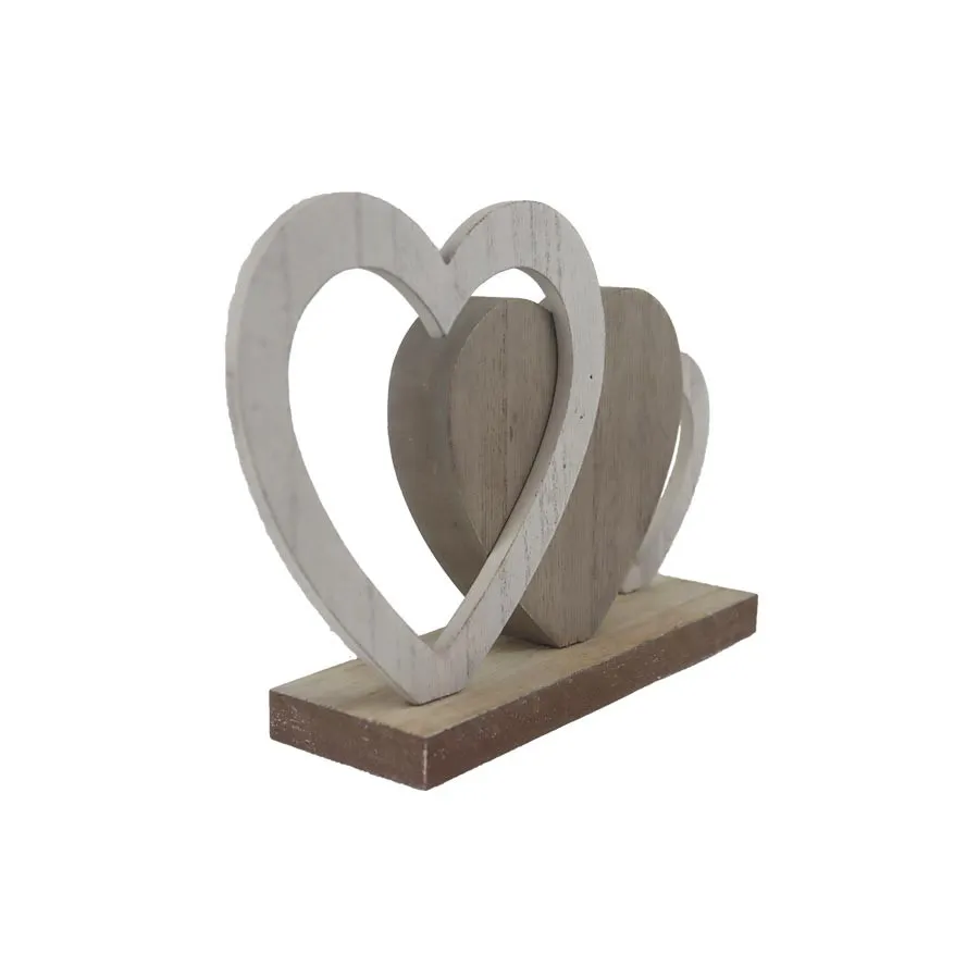 Dekoratives Herz. Abmessungen: 25,5 × 6 cm, Höhe 16 cm. Farbe: Kombination Natur, Weiß. Material auf Holzbasis.