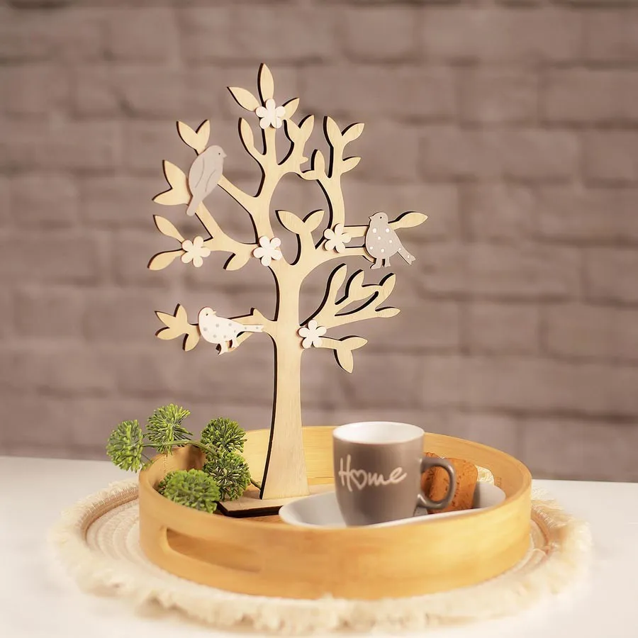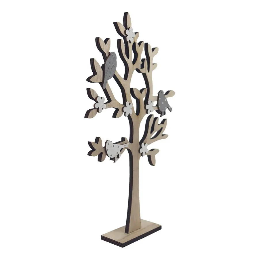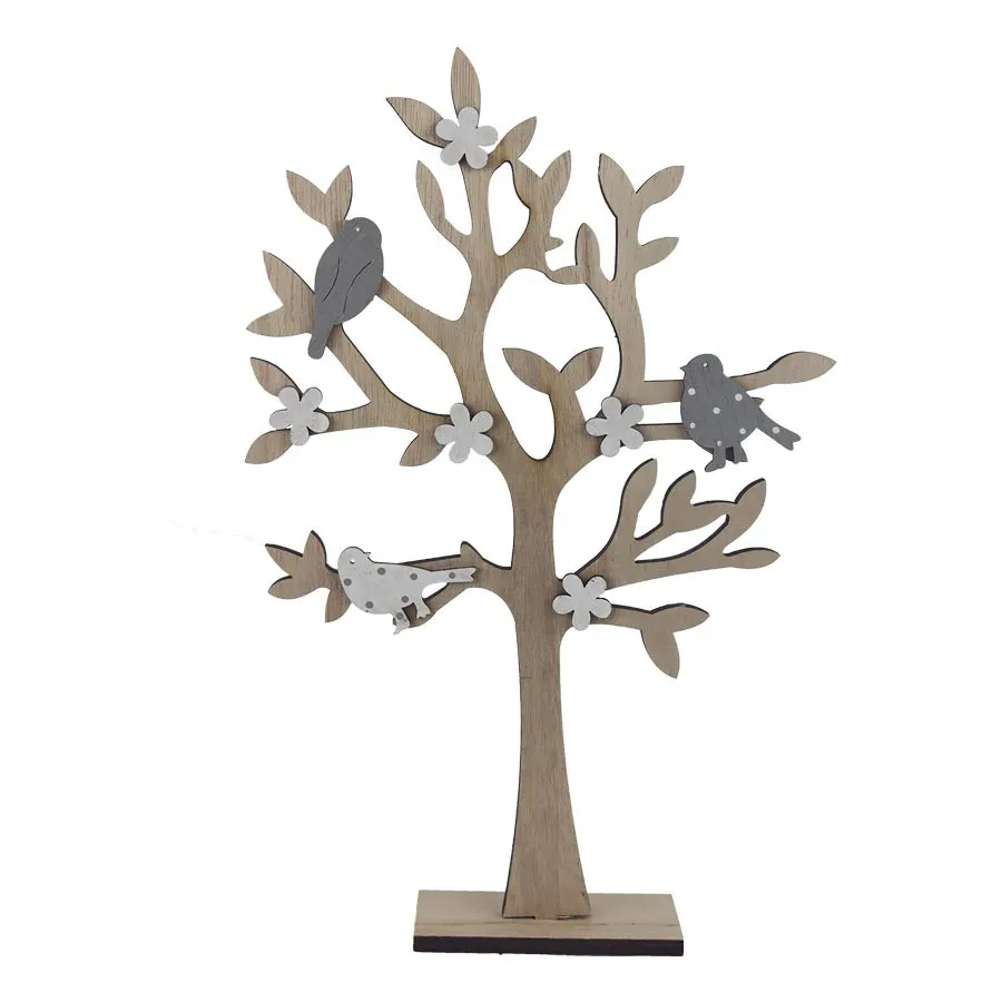 Dekorativer Baum. Abmessungen: 23,5 × 4,5 cm, Höhe 36 cm. Farbe: Kombination aus Natur mit Grau, Weiß. Material auf Holzbasis.