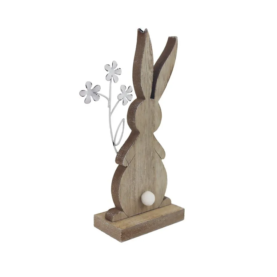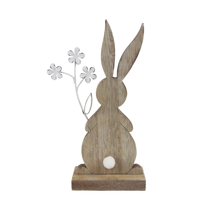 Dekorativer Hase. Maße: 19,5 x 8,5 cm, Höhe 19,5 cm. Farbe: Kombination aus Natur und Weiß. Holzwerkstoff, Metall.