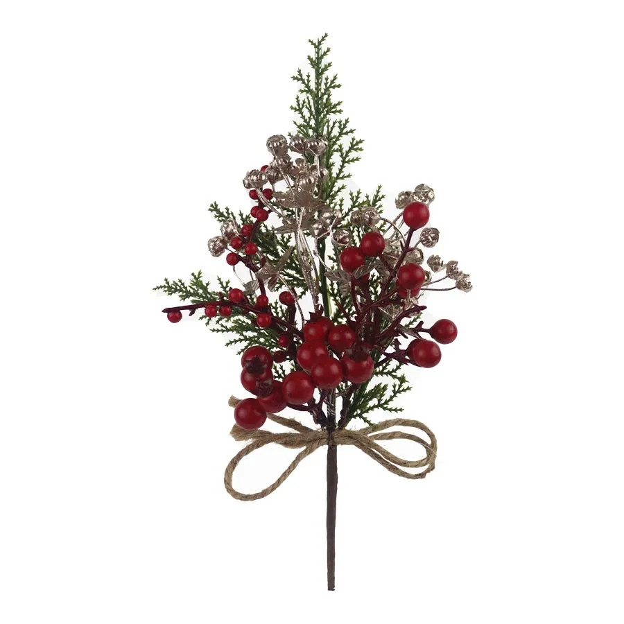 Dekorativer Zweig mit roten Beeren für weihnachtliche Stimmung. Maße: 15 x 7 cm, Gesamtlänge 32 cm. Farbe: Kombination von rot, grün, gold. Material: Kunststoff.