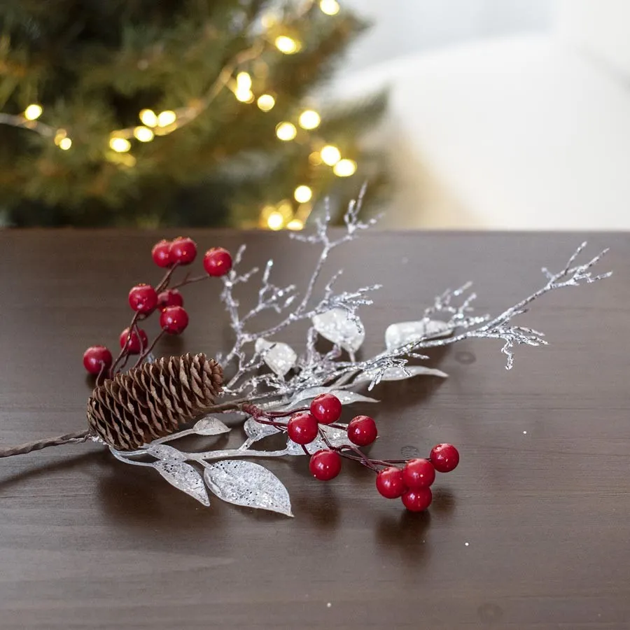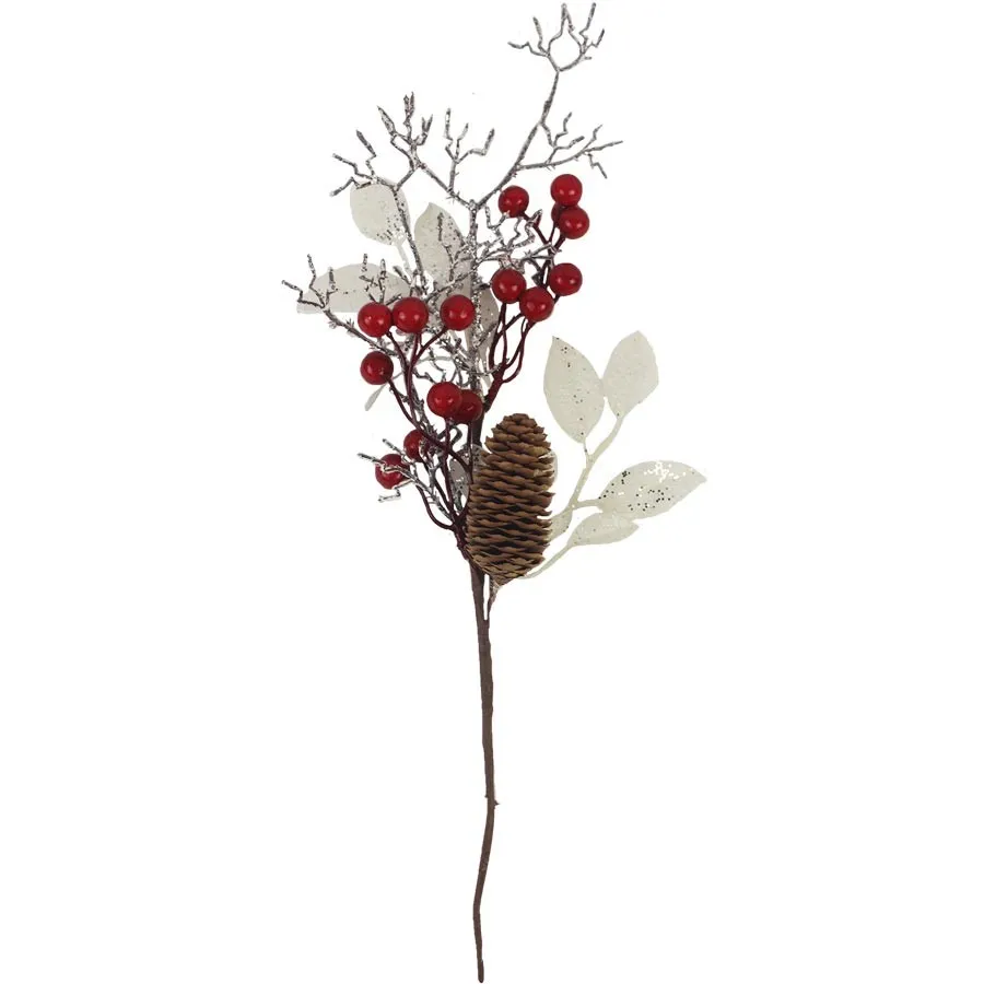 Zierzweig.Abmessungen: 14 x 7 cm, Höhe 40 cm.Farbe : Kombination, braun, rot, weiß.Material: Kunststoff.