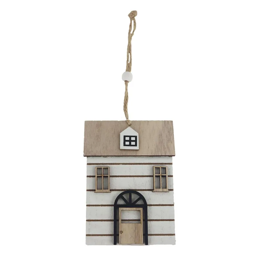 Dekoratives Haus zum Aufhängen. Abmessungen: 8 × 0,9 cm, Höhe 11 cm. Farbe: Kombination Natur, Weiß. Material auf Holzbasis.