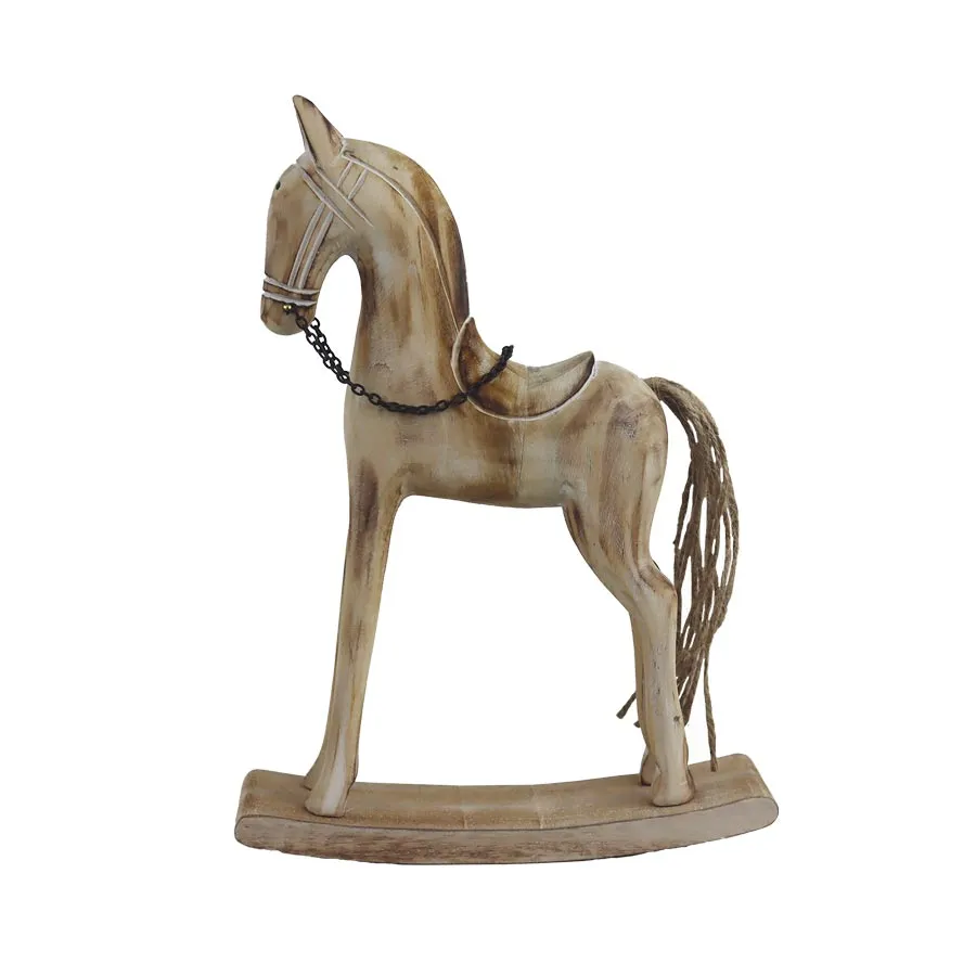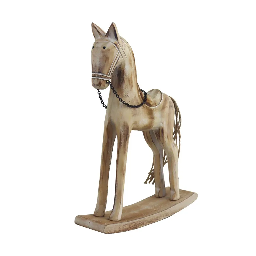 Großes Dekopferd. Abmessungen: 19 × 5,2 cm, Höhe 27,5 cm. Farbe: Kombination aus Braun und Weiß. Material auf Holzbasis.