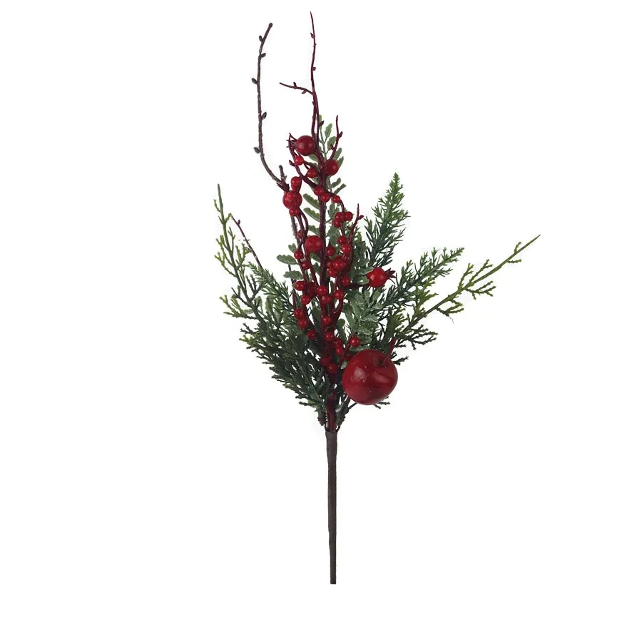 Dekorativer Zweig mit Beeren und einem Apfel.