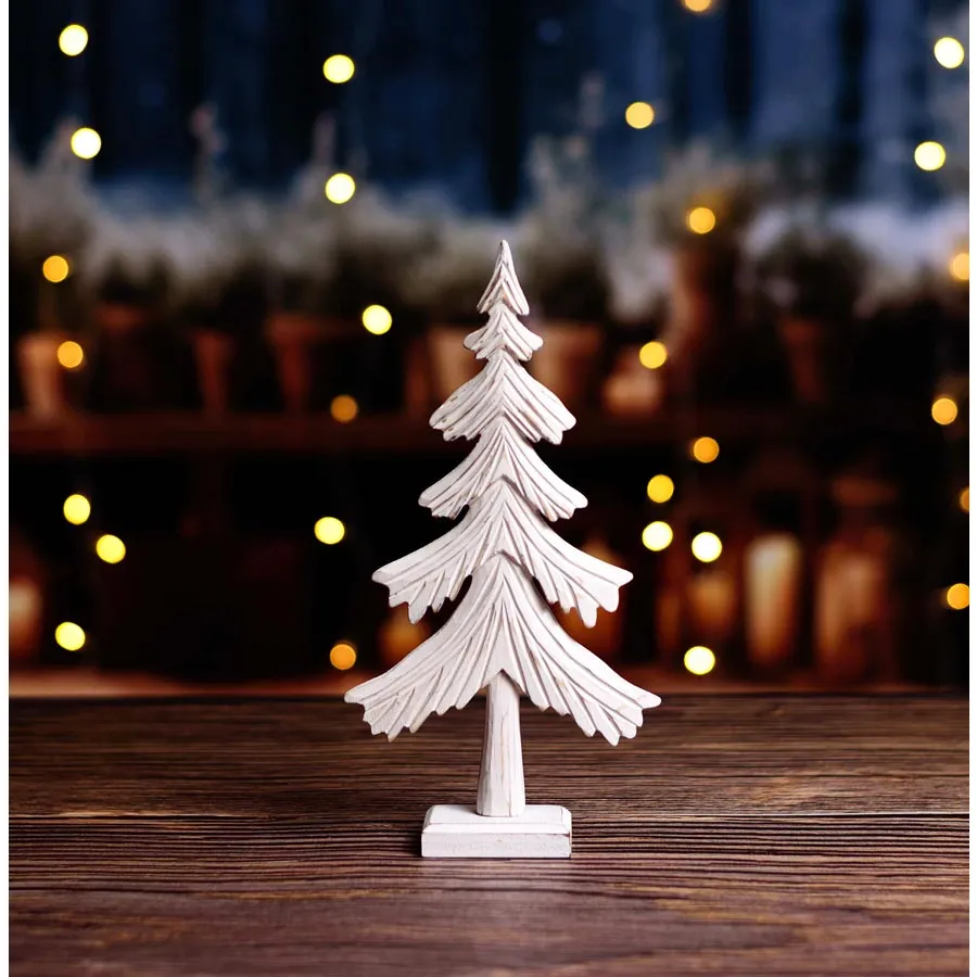 Dekorativer Baum. Abmessungen: 13 × 4 cm, Höhe 25,5 cm. Weiße Farbe. Material auf Holzbasis.