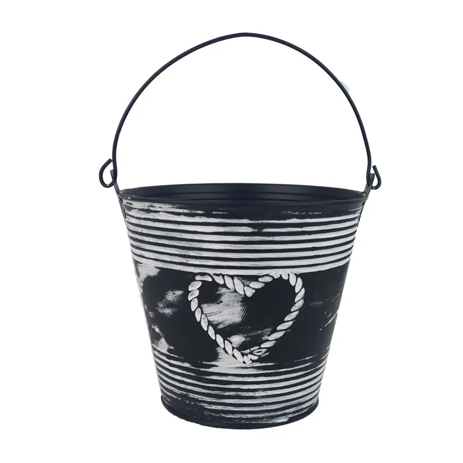 Blumentopf aus Blech mit Herz.