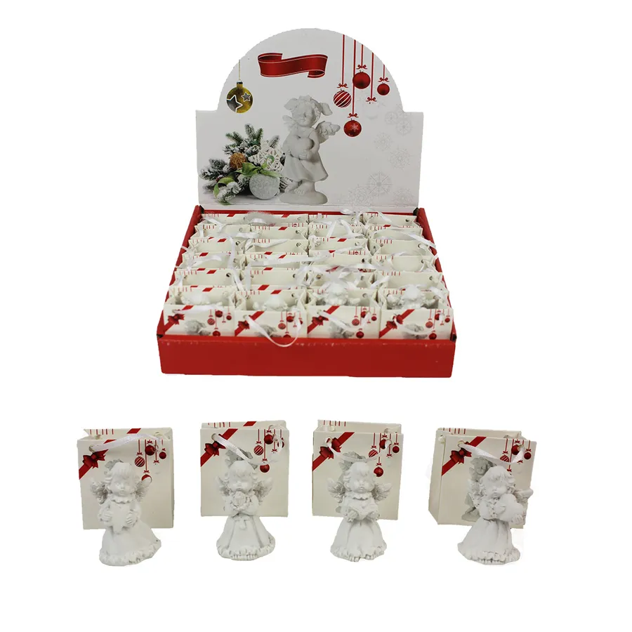 Ein Engel in einer Tasche. Maße: 3 x 3 cm, Höhe 4,5 cm. Die Tasche hat die Maße 5 x 3 cm, Höhe 5 cm. Es wird nur die ganze Box verkauft – 24 Stück.
