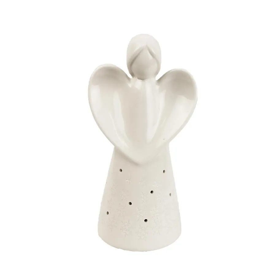 Deko-Engel mit LED-Beleuchtung. Anzahl der LEDs: 1. Lichtfarbe: Warmweiß. Stromversorgung: 2x 1,5V LR44 DC. Batterien sind im Paket enthalten. Schutzklasse: IP20 (Innenbereich)