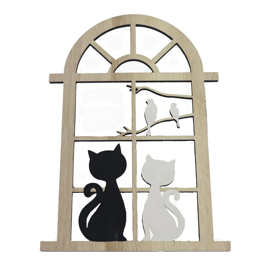 Fensterdekoration mit Katzen.