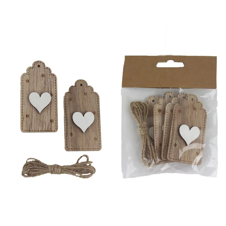 Set dekorativer Geschenkanhänger. Das Set enthält 4 Namensschilder. Maße: 4 x 0,5 cm, Höhe 8 cm. Farbe: Kombination aus Natur und Weiß. Material auf Holzbasis.