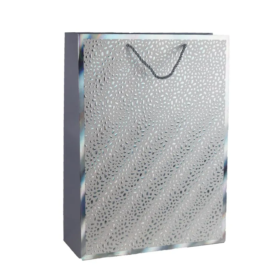 Geschenktasche. Abmessungen : 31 × 12 cm, Höhe 42 cm. Farbe : Silber Material : Papier
