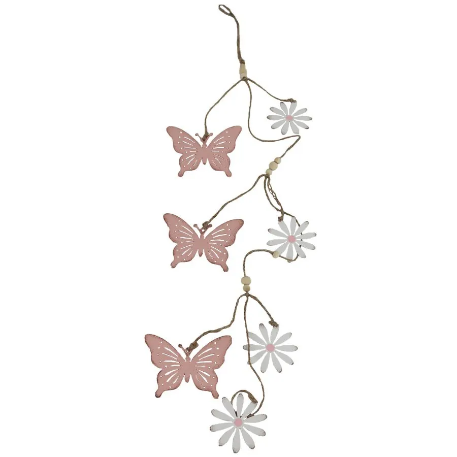 Dekorative Girlande. Maße: 9 x 0,1 cm, Gesamtlänge 85 cm. Farbe: Rosa, Weiß-Kombination. Material: Metall.