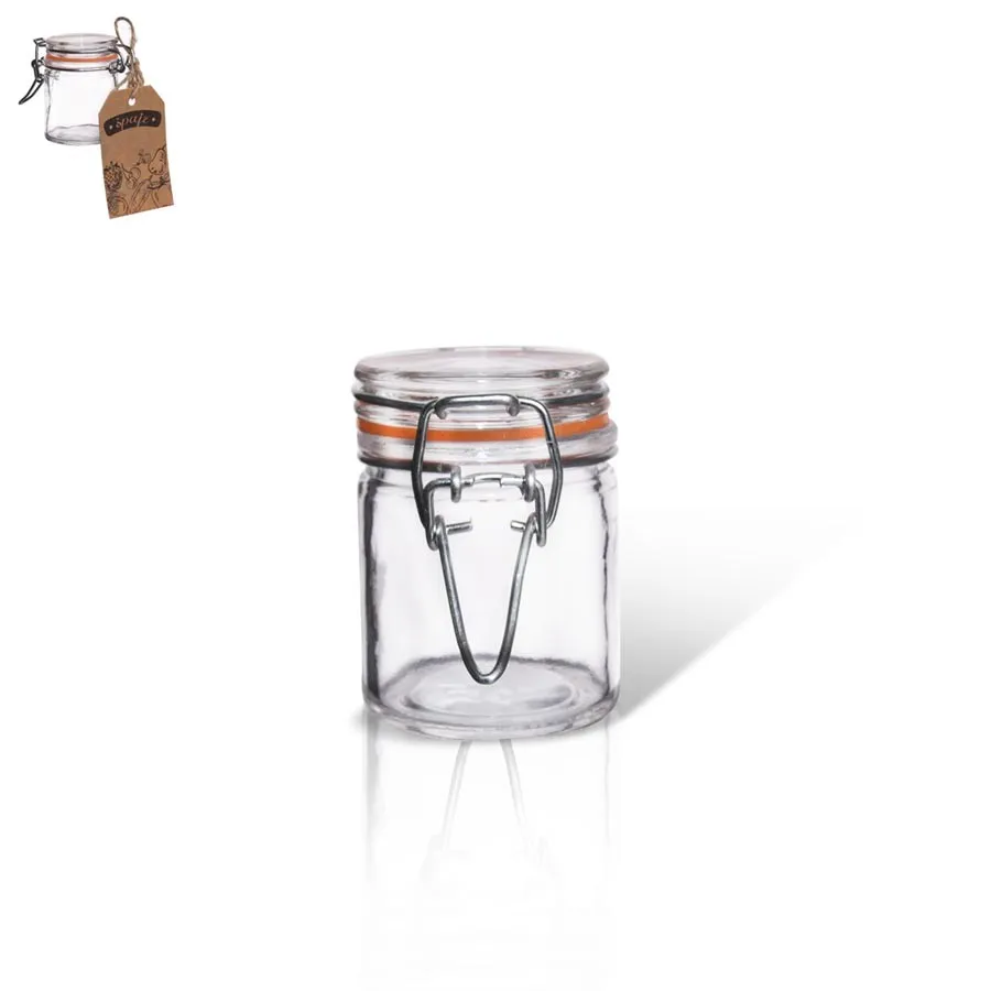 Patentglas mit klassischem Silikonverschluss und Drahtverschluss. Geprägtes Herzdekor.