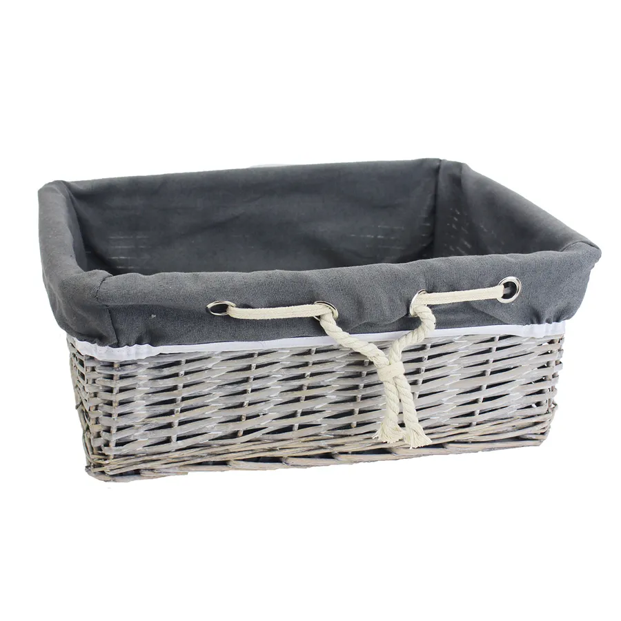 Aufbewahrungsbox mit Stoff - groß. Maße: 40 x 29 cm, Höhe 16 cm Farbe: grau Material: Weide, Stoff