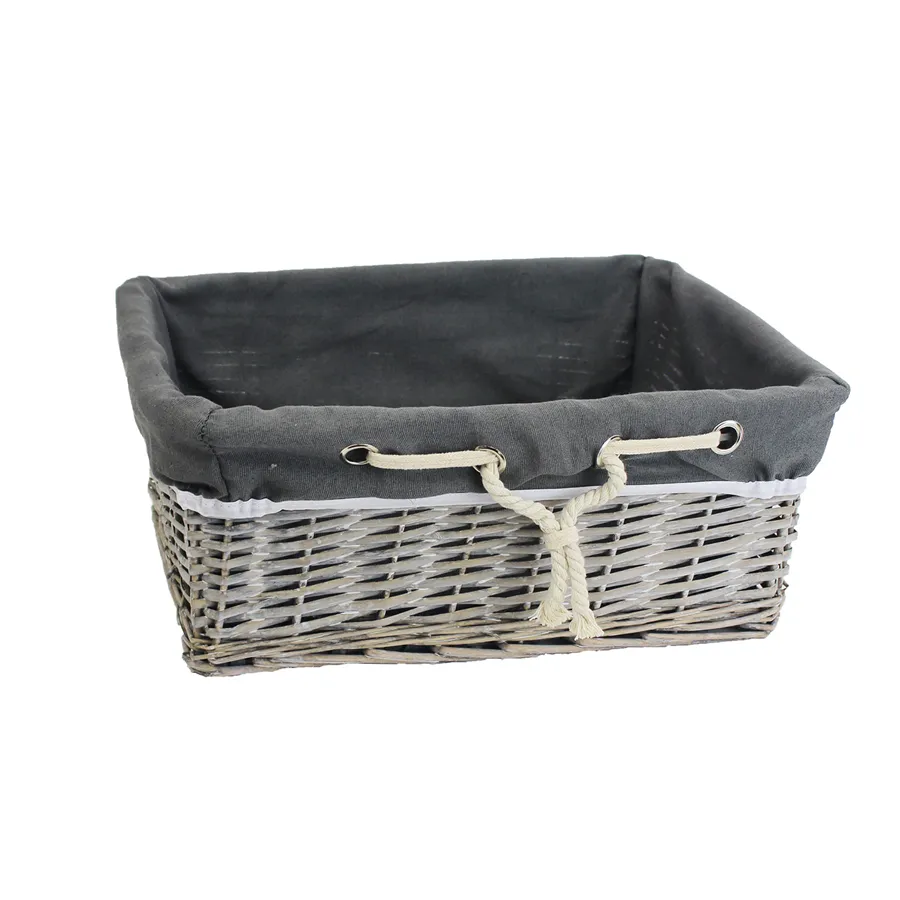 Aufbewahrungsbox mit Stoff-Medium. Maße: 33 x 24 cm, Höhe 14 cm Farbe: grau Material: Weide, Stoff