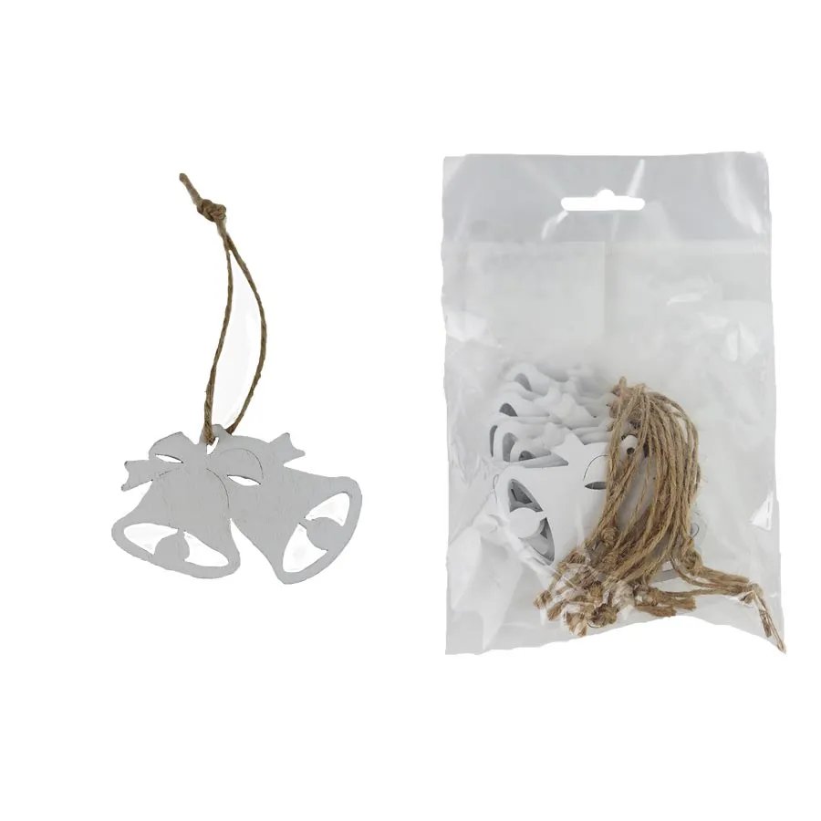 Set Dekoglocken zum Aufhängen. Das Set enthält 10 Glocken. Maße: Weiße Farbe. Material auf Holzbasis.