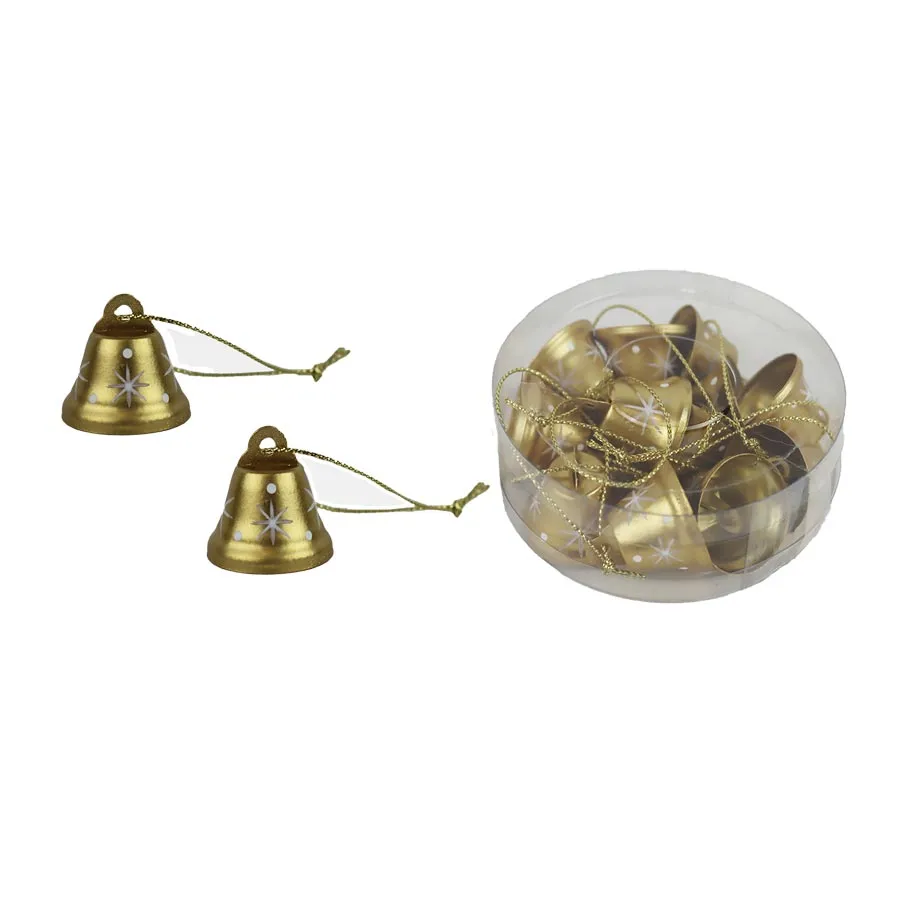 Set dekorativer Glocken zum Hängen. Das Set enthält 12 Glocken. Maße: Farbe: Gold. Material: Metall.